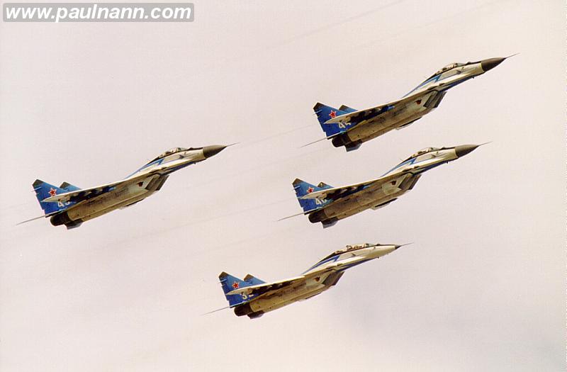 ![]() | 32, 43, 44, 48, Mikoyan MiG-29 Fulcrum x4, Russian AF/Swifts display team, displaying, Zhukovsky, MAKS95, 27/8/1995 |