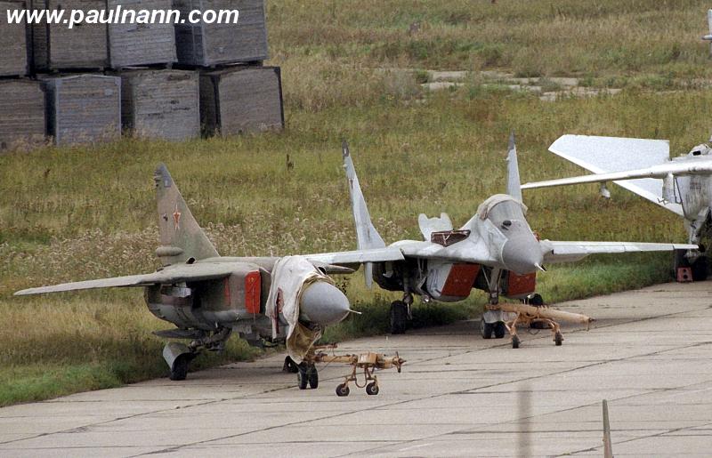 ![]() | 80 & 24, Mikoyan-Guryevich MiG-23ML Flogger & MiG-29 Fulcrum ('9-24'?), Mikoyan OKB, flightline, Zhukovsky, MAKS95, 27/8/1995 |